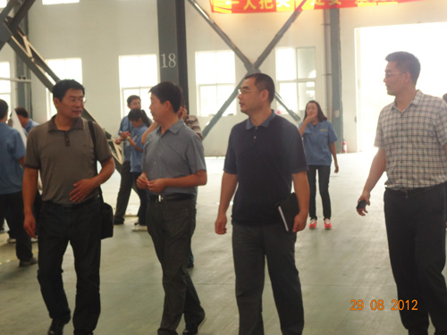 2012年8月29日上午,市委秘书长和开发区管委领导一行人来我厂视察指导工作,我公司董事长曹耀辉热情接待。