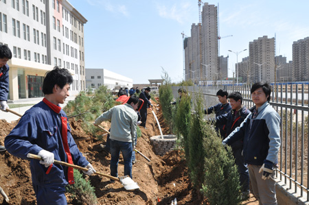 2013年4月14日,博硕光电全体员工在项目部李志军副总经理的号召下,早早来到公司,一起参与到植树绿化活动中。